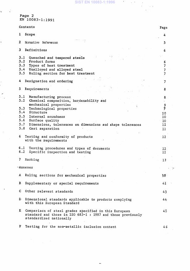 EN 10083-1:1991 is a standard published by the European Committee for Standardization (CEN). Its full title is "Quenched and tempered steels - Part 1: Technical delivery conditions for special steels". This standard covers: This European standard gives the technical delivery requirements for semi-finished products, hot formed, for example blooms, billets, slabs, bars, rods, wide flats, hot or cold-rolled sheet/plate and strip, hammer and drop forgings