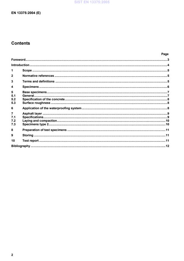 EN 13375:2004 is a standard published by the European Committee for Standardization (CEN). Its full title is "Flexible sheets for waterproofing - Waterproofing of concrete bridge decks and other concrete surfaces trafficable by vehicles - Specimen preparation". This standard covers: This European standard is one of a series of standards dealing with the testing of flexible sheets for waterproofing of concrete bridge decks and other areas of concrete trafficable by vehicles. The European standard specifies: - the composition, the characteristics and the preparation procedure of the base specimen concrete slabs: - the composition, the characteristics and the preparation procedure of different bituminous mixes for the overlay; the rules for the preparation of specimens.