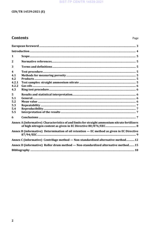 Keywords: CEN/TR 14539:2021, ammonium nitrate, porosity, oil retention, fertilizer testing, EC method, centrifuge method, roller drum method, inter‑laboratory, QA/QC.