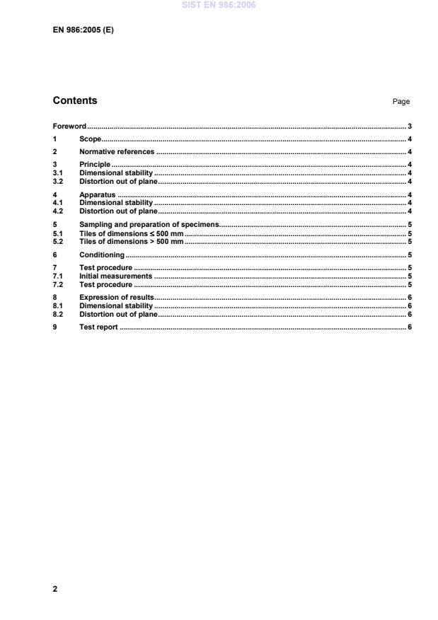 EN 986:2005 is a standard published by the European Committee for Standardization (CEN). Its full title is "Textile floor coverings - Tiles - Determination of dimensional changes due to the effects of varied water and heat conditions and distortion out of plane". This standard covers: This European Standard specifies a method for the determination of dimensional changes and distortion out of plane likely to take place when textile floor coverings in tile form are exposed to various conditions of moisture and heat. This European Standard is applicable to all textile floor coverings in tile form.