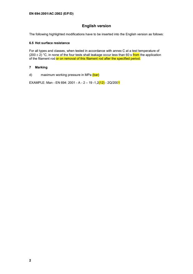 EN 694:2001/AC:2002 has the following relationships with other standards: It is inter standard links to EN 694:2001+A1:2007, EN 694:2001. Understanding these relationships helps ensure you are using the most current and applicable version of the standard.