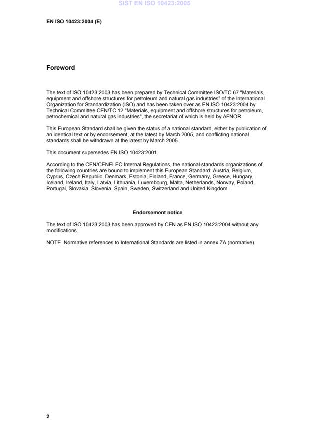 Ta slovenski standard je istoveten z: EN ISO 10423:2004