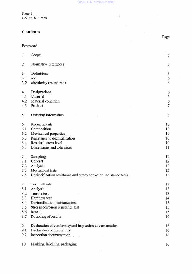 EN 12163:1998 is a standard published by the European Committee for Standardization (CEN). Its full title is "Copper and copper alloys - Rod for general purposes". This standard covers: This European Standard specifies the composition, property requirements and dimensional tolerances for copper and copper alloy rod supplied in straight lengths, intended for general purposes. The sampling procedures and the methods of test for verification of conformity to the requirements of this standard are also specified.