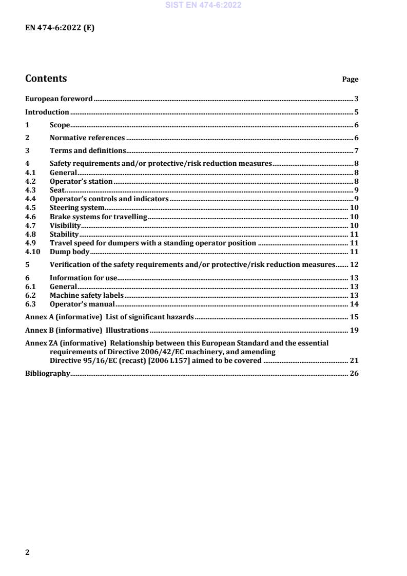 The EN 474-6:2022 standard provides comprehensive guidelines aimed at ensuring safety in the design and use of dumpers in earth-moving machinery. Its primary objective is to address significant hazards and hazardous situations that may arise during the entire lifecycle of dumpers, emphasizing both intended use and foreseeable misuse scenarios as outlined in EN ISO 12100:2010. One of the key strengths of this standard is its complementary nature to the general safety requirements established in EN 474-1:2022, allowing for a tailored approach that specifically addresses the unique risks associated with dumpers. By supplementing and modifying existing requirements, it ensures that the safety measures are relevant and practical for manufacturers and operators alike. This targeted focus enhances the document's relevance in the marketplace, as it recognizes the specific operational contexts and practical challenges faced by users of dumpers. Furthermore, the clear delineation of exclusions within the standard strengthens its focus. By specifying that electrical circuits and performance requirements for control systems are outside its scope, EN 474-6:2022 avoids ambiguity, allowing stakeholders to understand precisely what aspects are covered. Similarly, the exclusion of pedestrian-controlled dumpers and self-loading equipment from the document's purview allows for an in-depth examination of the relevant safety requirements without diluting the standards for other machinery types. However, it is crucial to note that certain hazards, such as the transmission of power between self-propelled machinery and recipient machinery, laser hazards, and lightning, are not addressed within this standard. This could be a limitation for those seeking comprehensive safety guidelines across all potential risks related to dumpers. Overall, EN 474-6:2022 is a vital document that enhances safety practices within the earth-moving machinery sector. Its specificity and clear structure contribute to improved safety outcomes while providing a relevant framework tailored to the operational realities of dumpers. This standard stands as a critical reference point for manufacturers, operators, and safety professionals dedicated to ensuring the safe utilization of dumpers in various settings.
