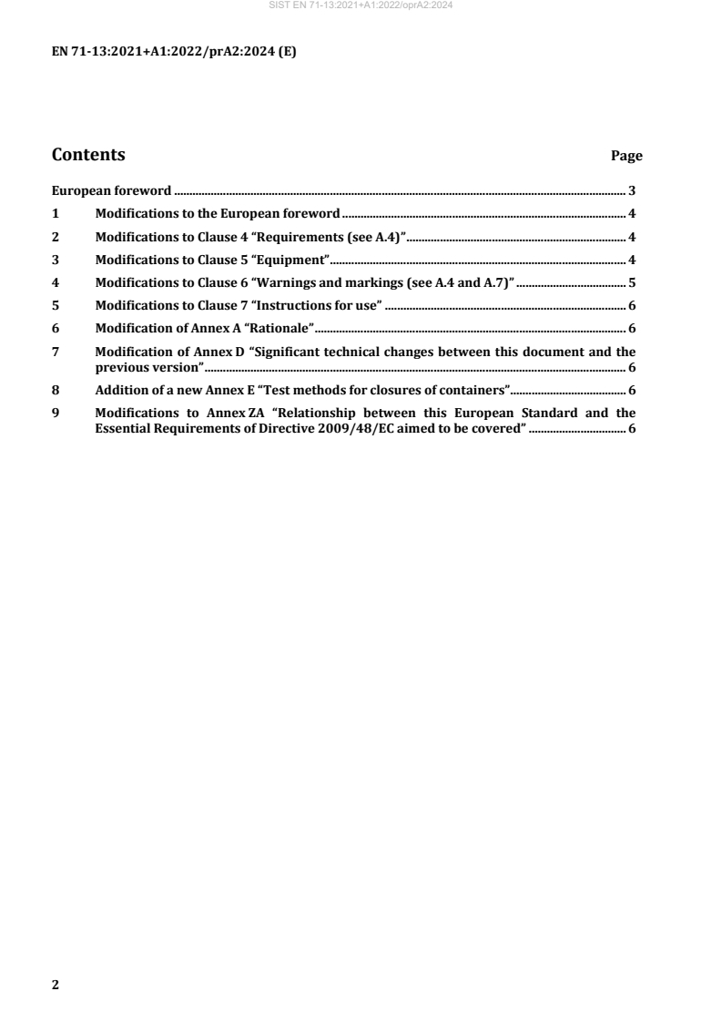 © 2024 CEN All rights of exploitation in any form and by any means reserved Ref. No. EN 71-13:2021+A1:2022/prA2:2024 E