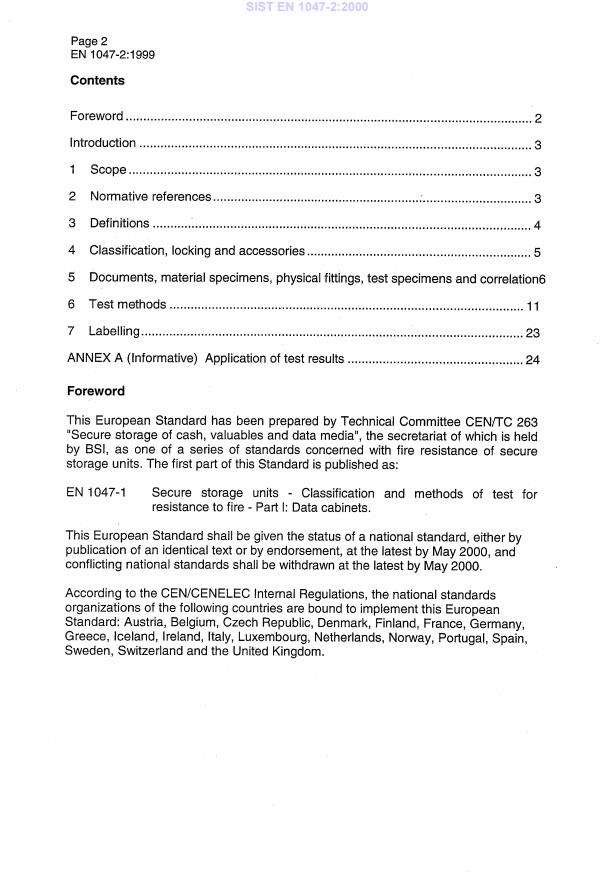 EN 1047-2:1999 is classified under the following ICS (International Classification for Standards) categories: 03.060 - Finances. Banking. Monetary systems. Insurance; 13.220.40 - Ignitability and burning behaviour of materials and products; 35.020 - Information technology (IT) in general; 55.180.10 - General purpose containers. The ICS classification helps identify the subject area and facilitates finding related standards.