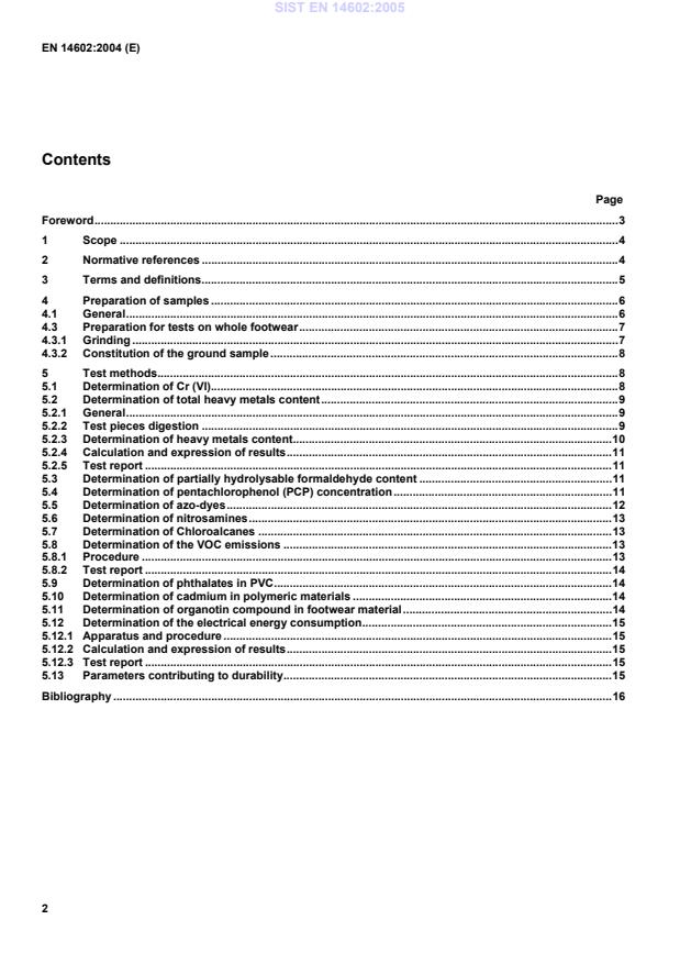 EN 14602:2004 is a standard published by the European Committee for Standardization (CEN). Its full title is "Footwear - Test methods for the assessment of ecological criteria". This standard covers: This document establishes the test methods to assess the ecological criteria of the footwear manufacturing process. Note This document has been designed to define the test methods necessary to issue the footwear Ecolabel (JOCE 19th March 2002). However this standard covers more than this field. This document applies to any kind of footwear except those containing electrical or electronical components. The chemical analysis of the metallic components is outside of the scope of this document.