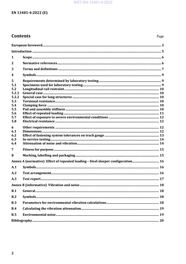 - Operational aspects: Dimensions, effect on track gauge, in‑service testing, noise and vibration attenuation, marking and packaging, and fitness‑for‑purpose criteria.