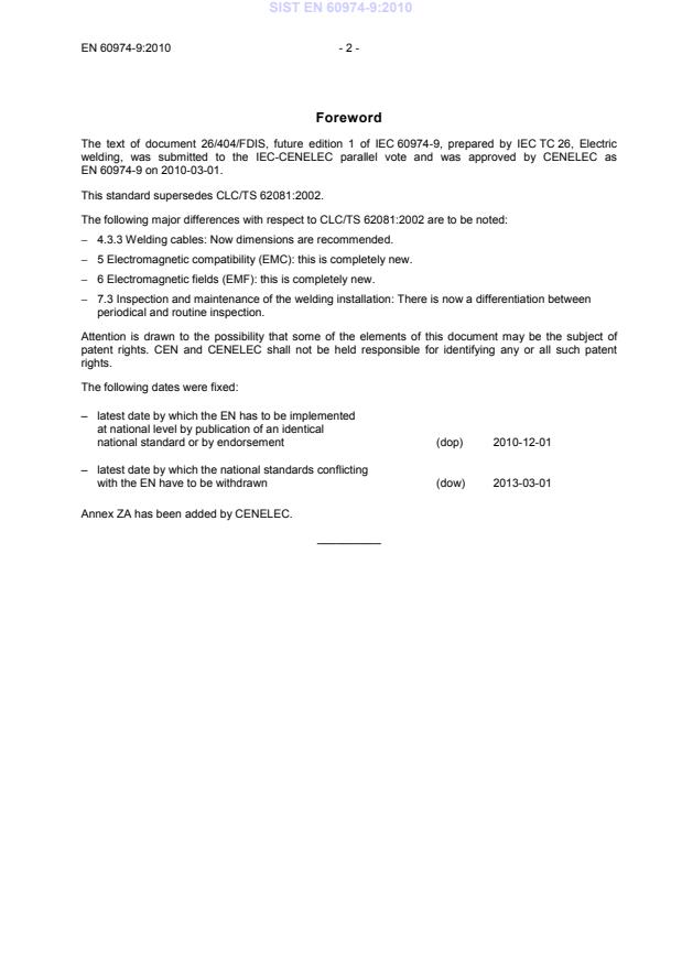 2013-03-01 Annex ZA has been added by CENELEC. __________ SIST EN 60974-9:2010