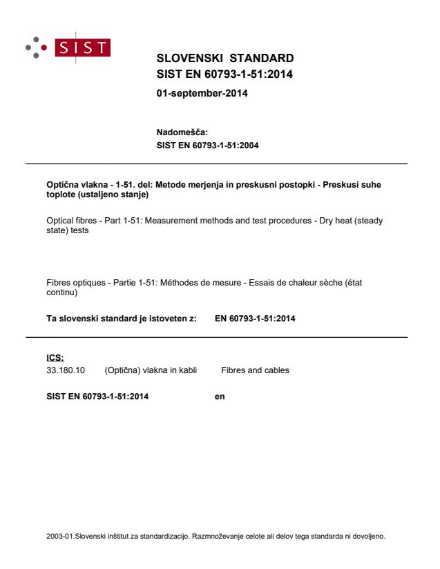 Ta slovenski standard je istoveten z: EN 60793-1-51:2014