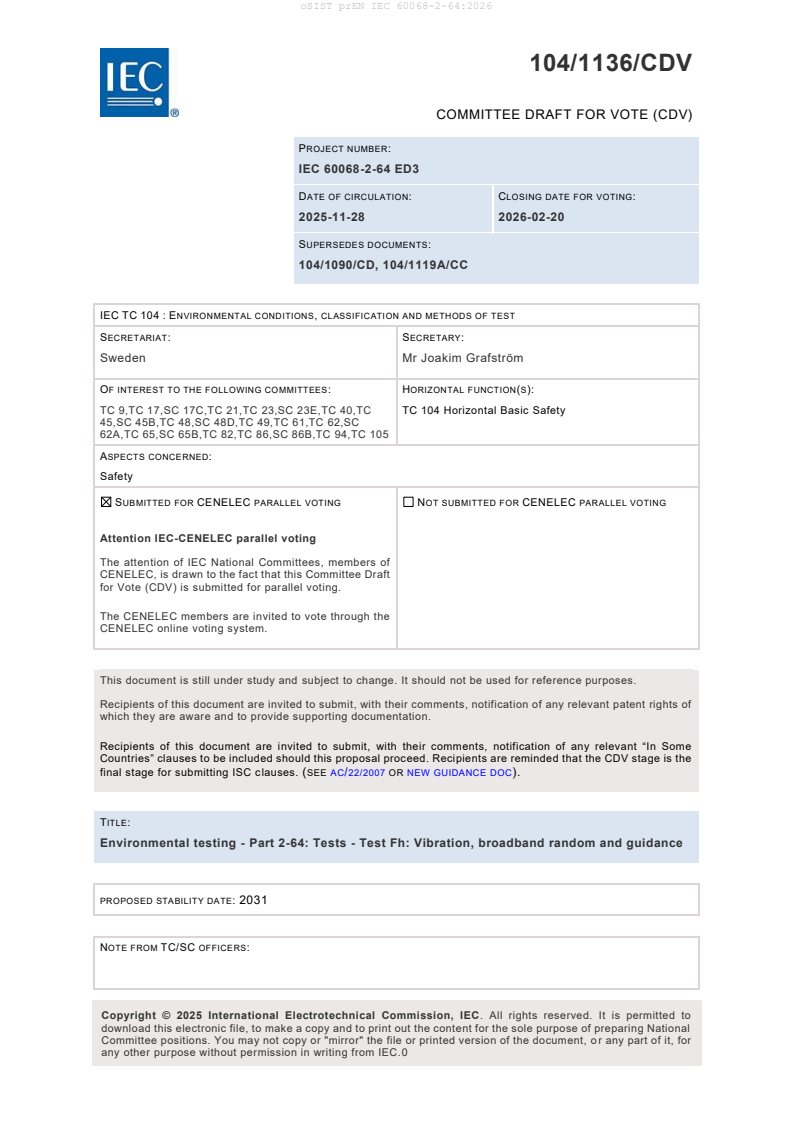 COMMITTEE DRAFT FOR VOTE (CDV)