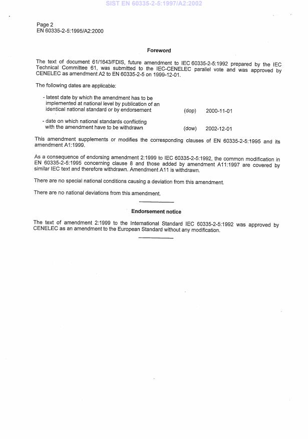 EN following parallel vote * Replaces A11 * Superseded by EN 60335-2-5:2003
