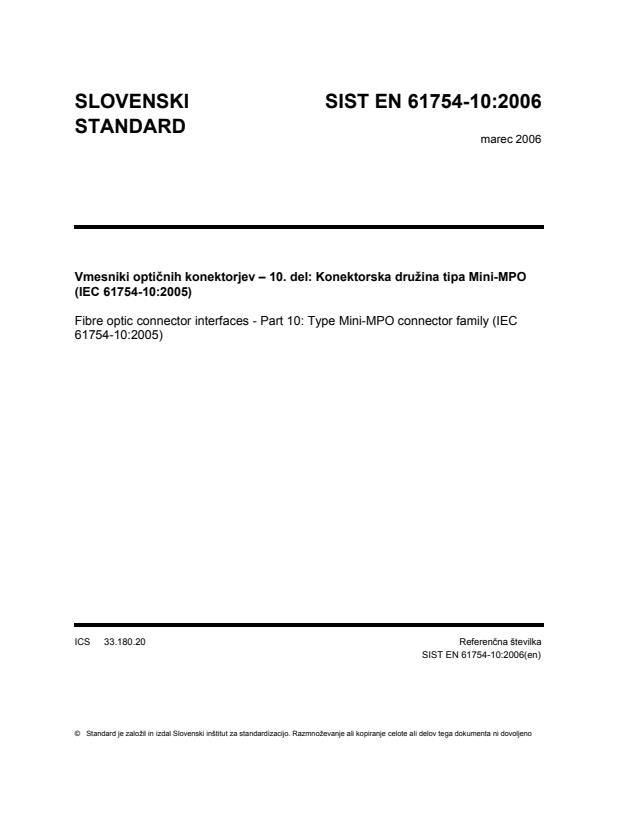Vmesniki optičnih konektorjev – 10. del: Konektorska družina tipa Mini-MPO (IEC 61754-10:2005)