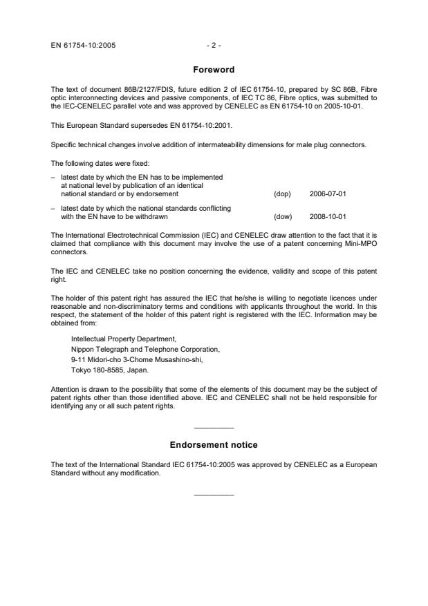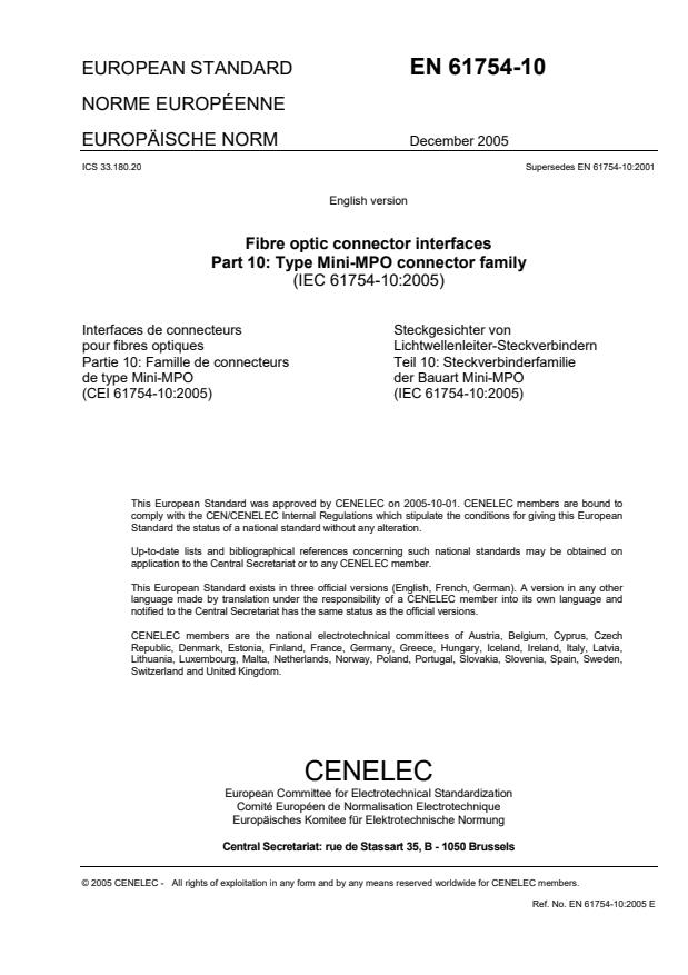 ICS 33.180.20 Supersedes EN 61754-10:2001