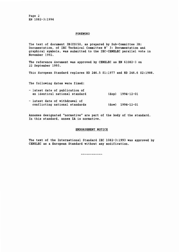 EN 61082-3:1994 has the following relationships with other standards: It is inter standard links to EN 61082-1:2006. Understanding these relationships helps ensure you are using the most current and applicable version of the standard.
