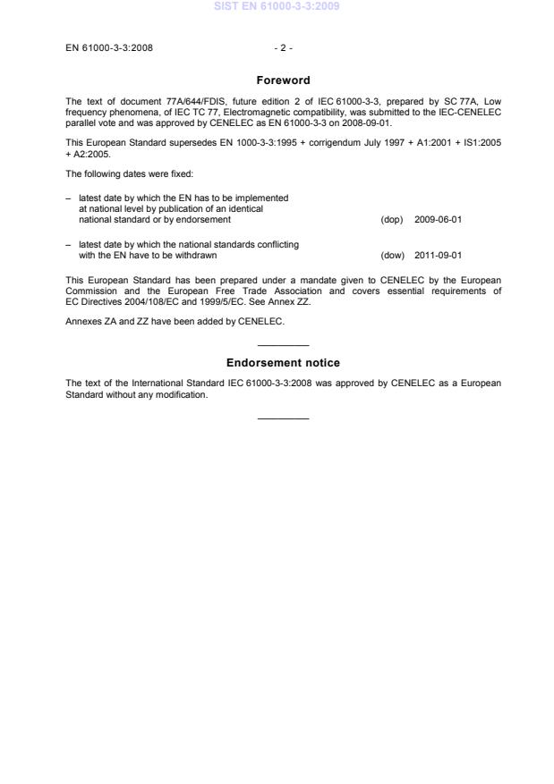 ICS 33.100.10 Supersedes EN 61000-3-3:1995 + A1:2001 + IS1:2005 + A2:2005