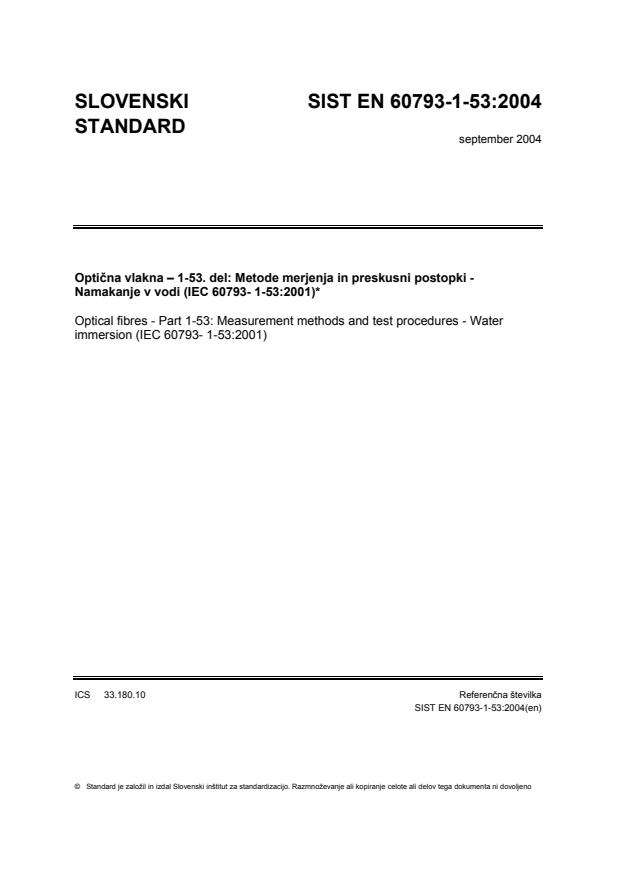 Optična vlakna – 1-53. del: Metode merjenja in preskusni postopki - Namakanje v vodi (IEC 60793- 1-53:2001)*