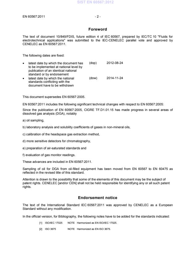 EN ISO/IEC 17050-2:2004 (IEC 60567:2011) provides guidance for the sampling and laboratory analysis of free and dissolved gases in oil-filled electrical equipment. It is intended to support reliable dissolved gas analysis (DGA) and gas-in-oil testing as part of condition monitoring and fault diagnosis for transformers, bushings, and other oil-immersed apparatus. The 2011 edition updates methods and good practice on sampling, extraction, calibration and quality control and supersedes EN 60567:2005.
