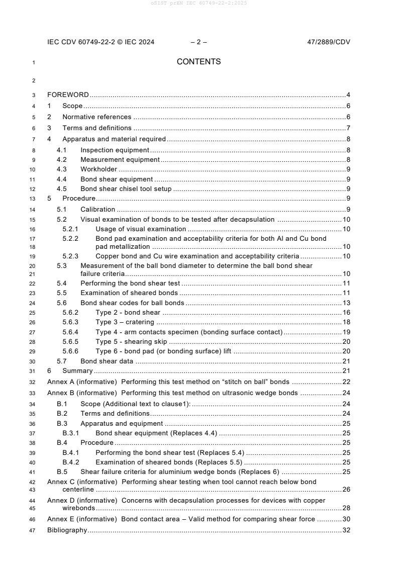 - Use in conjunction with IEC 60749-22-1:2025 (wire bond pull test methods) - shear testing does not replace pull tests.