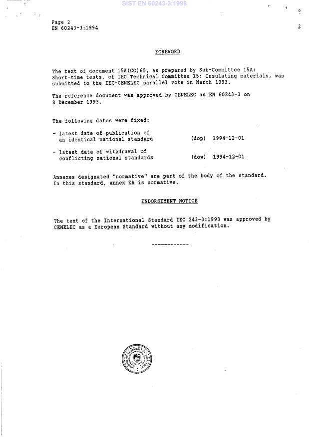 Ta slovenski standard je istoveten z: EN 60243-3:1994