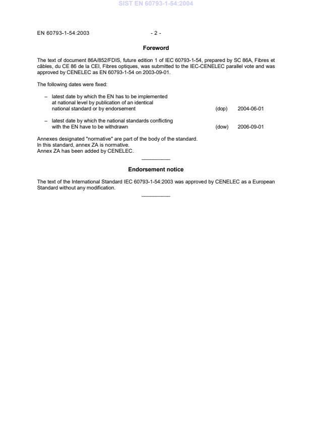 The text of the International Standard IEC 60793-1-54:2003 was approved by CENELEC as a European Standard without any modification. __________