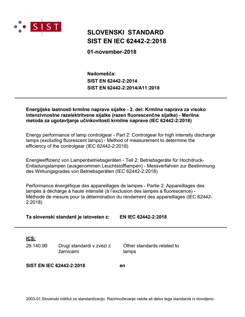 Ta del standarda EN IEC 62442 določa metodo merjenja izgub moči elektromagnetnih krmilnih naprav, skupne vhodne moči in moči elektronskih krmilnih naprav v stanju pripravljenosti za visokointenzivnostne razelektritvene sijalke (razen fluorescenčnih sijalk). Določena je tudi metoda za izračun učinkovitosti elektronskih krmilnih naprav za visokointenzivnostne razelektritvene sijalke.