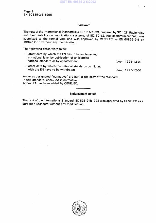 EN 60835-2-5:1995 is classified under the following ICS (International Classification for Standards) categories: 33.060.30 - Radio relay and fixed satellite communications systems. The ICS classification helps identify the subject area and facilitates finding related standards.