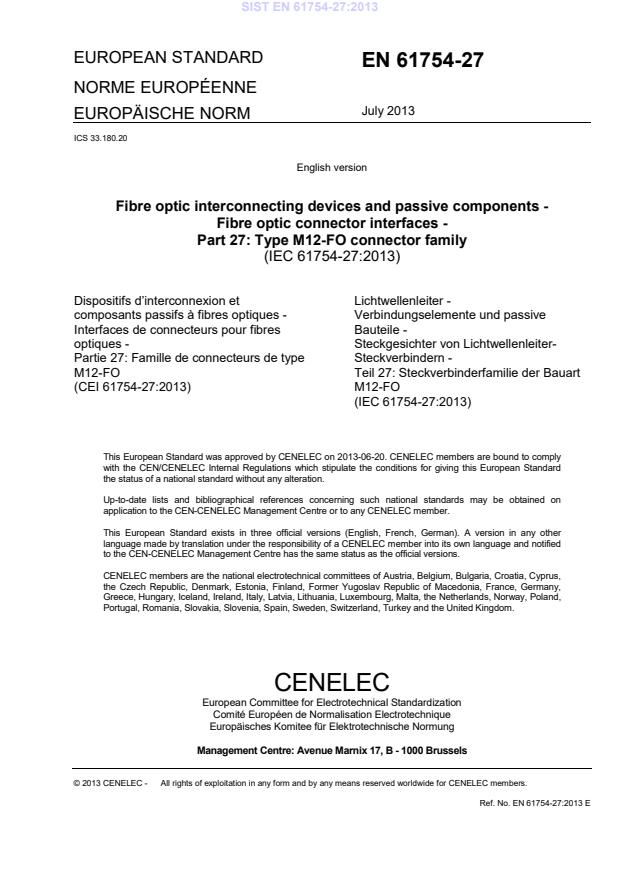 Ta slovenski standard je istoveten z: EN 61754-27:2013