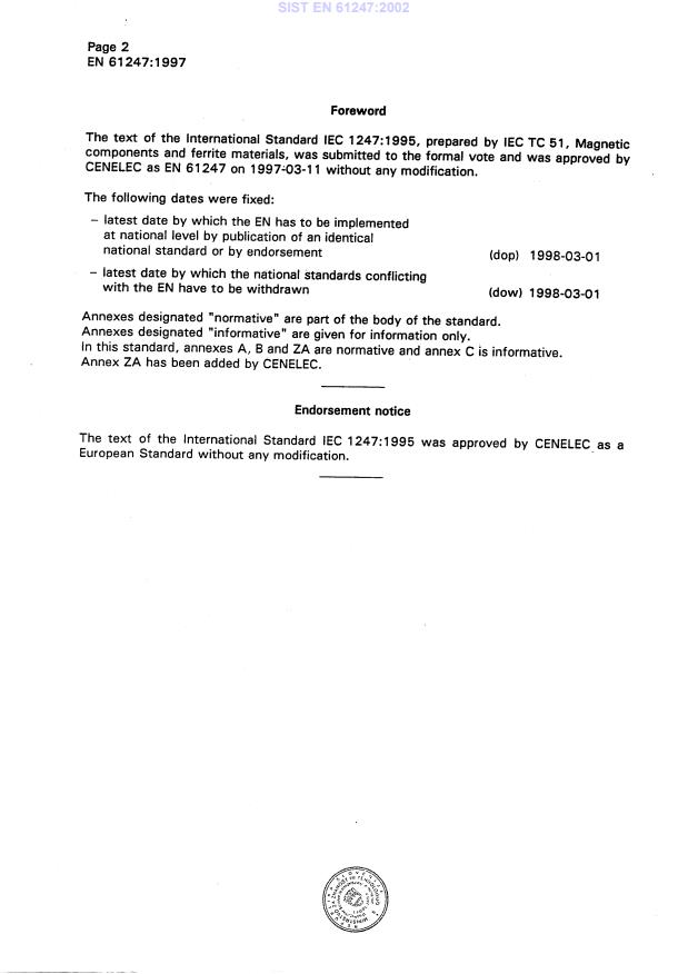 EN 61247:1997 is classified under the following ICS (International Classification for Standards) categories: 29.100.10 - Magnetic components. The ICS classification helps identify the subject area and facilitates finding related standards.