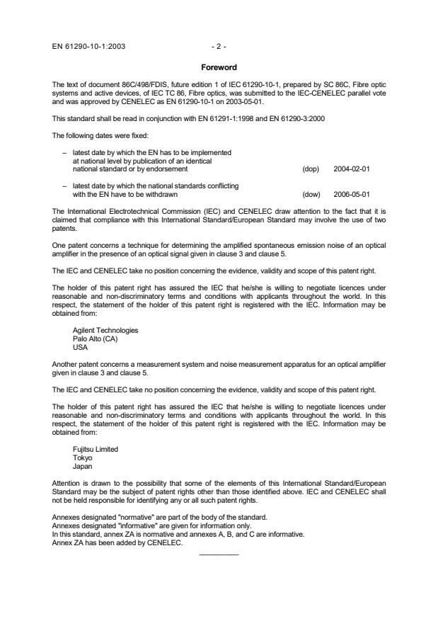 The text of the International Standard IEC 61290-10-1:2003 was approved by CENELEC as a European Standard without any modification.