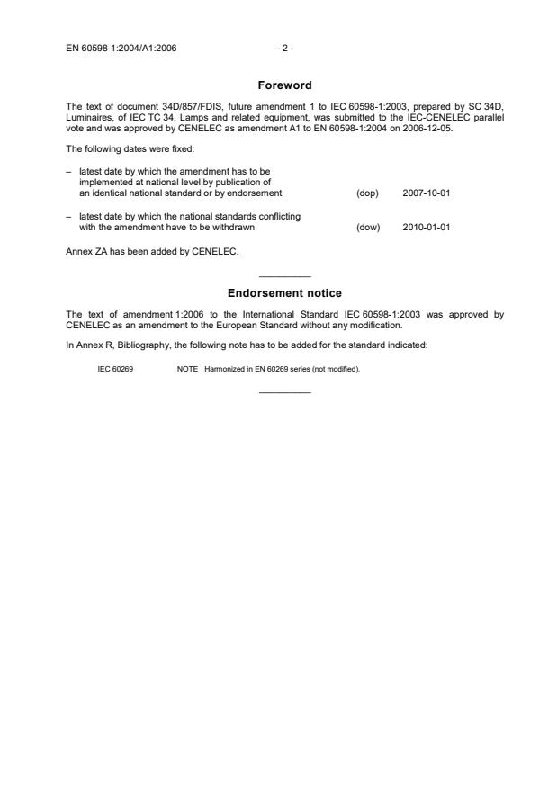 vote and was approved by CENELEC as amendment A1 to EN 60598-1:2004 on 2006-12-05.