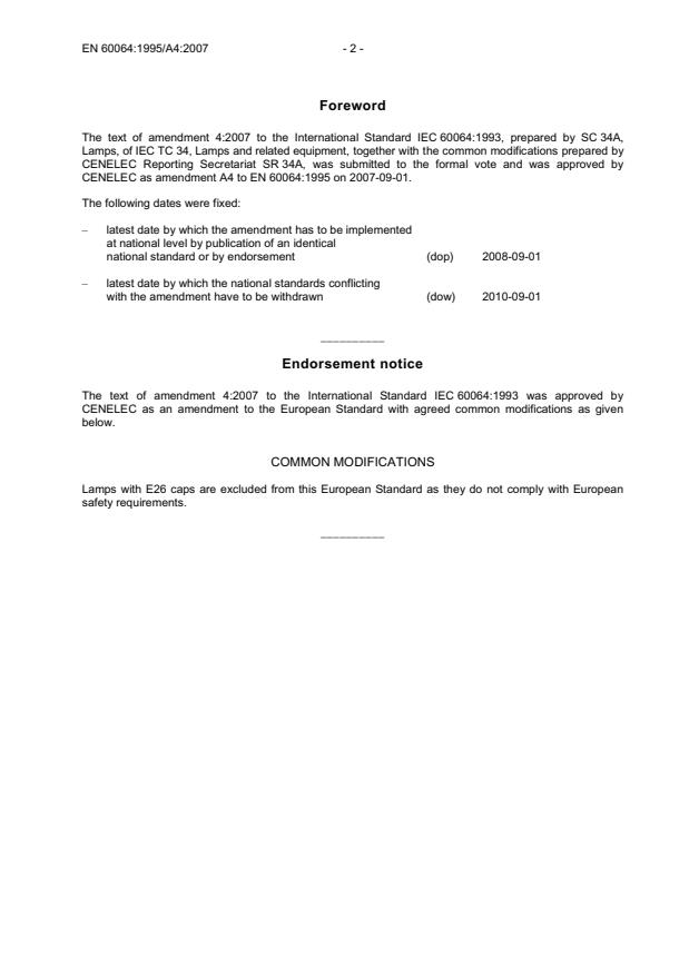 This amendment A4 modifies the European Standard EN 60064:1995; it was approved by CENELEC on