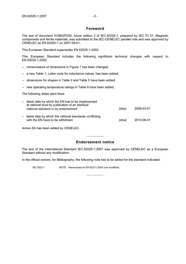 EN 62025-1:2007 is classified under the following ICS (International Classification for Standards) categories: 29.100.10 - Magnetic components. The ICS classification helps identify the subject area and facilitates finding related standards.