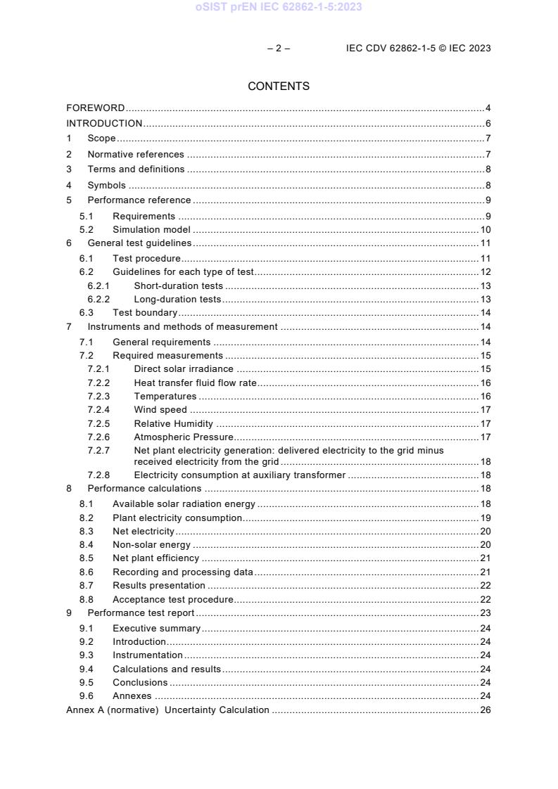 Keywords: prEN IEC 62862-1-5:2023, solar thermal electric plants, performance test code, acceptance testing, net plant efficiency, measurement uncertainty, solar thermal power plants, direct normal irradiance.