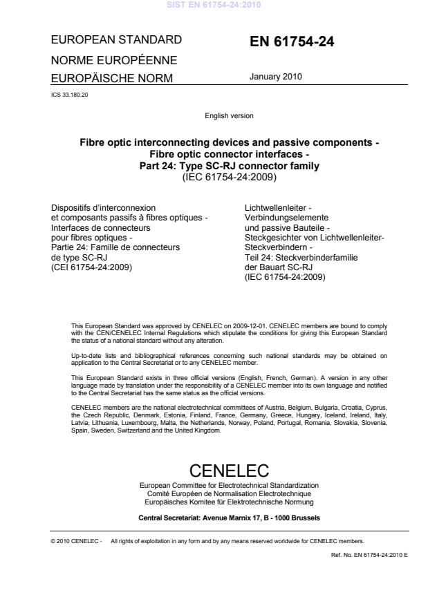 interfaces - Part 24: Type SC-RJ connector family (IEC 61754-24:2009)