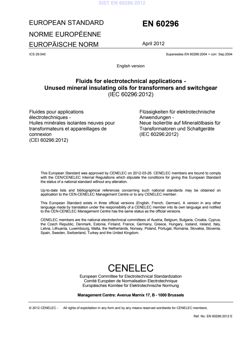ICS 29.040 Supersedes EN 60296:2004 + corr. Sep.2004