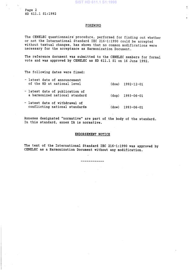Ta slovenski standard je istoveten z: HD 611.1 S1:1992