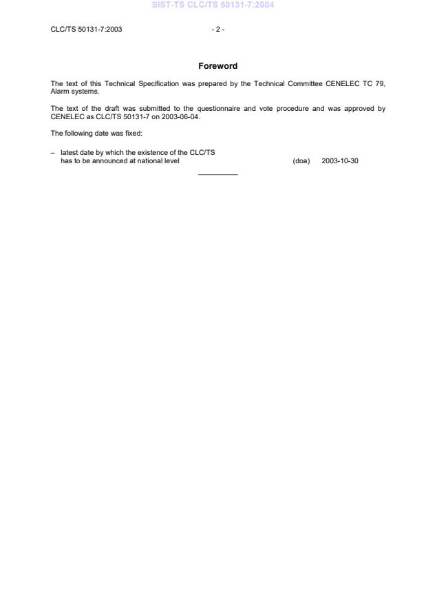 Ta slovenski standard je istoveten z: CLC/TS 50131-7:2003