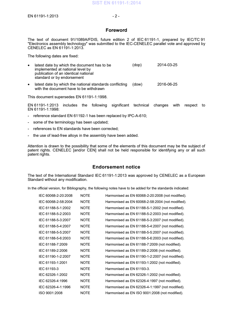 Ta del standarda IEC 61191 določa zahteve za materiale, metode in kriterije za preverjanje za izdelavo kakovostnih spajkanih medsebojnih povezav in sestavov, ki uporabljajo tehnologije površinske montaže in sorodne tehnologije. Ta del standarda IEC 61191 vsebuje tudi priporočila za dobre postopke izdelave.