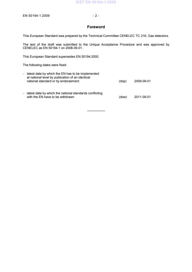 EN 50194-1:2009 is a standard published by CLC. Its full title is "Electrical apparatus for the detection of combustible gases in domestic premises - Part 1: Test methods and performance requirements". This standard covers: This European Standard specifies general requirements for the construction, testing and performance of electrically operated apparatus for the detection of combustible gases, designed for continuous operation in a fixed installation in domestic premises. The apparatus may be mains or battery powered. Additional requirements for apparatus to be used in recreational vehicles and similar premises are specified in EN 50194-2. NOTE 1 For caravan holiday homes EN 50194-1 applies. This European Standard specifies two types of apparatus to operate in the event of an escape of town gas, natural gas or liquefied petroleum gas (LPG): - Type A apparatus - to provide a visual and audible alarm and an executive action in the form of an output signal that may actuate directly or indirectly a shut-off device and/or other ancillary device; - Type B apparatus - to provide a visual and audible alarm only. This European Standard excludes apparatus for the detection of toxic hazards of gases such as carbon monoxide (see EN 50291-1 and EN 50291-2). Apparatus complying with this standard is not considered suitable for industrial or commercial installations for which EN 60079-29-1 apply. NOTE 2 Apparatus tested in accordance with EN 60079-29-1 will not necessarily comply with this European Standard.