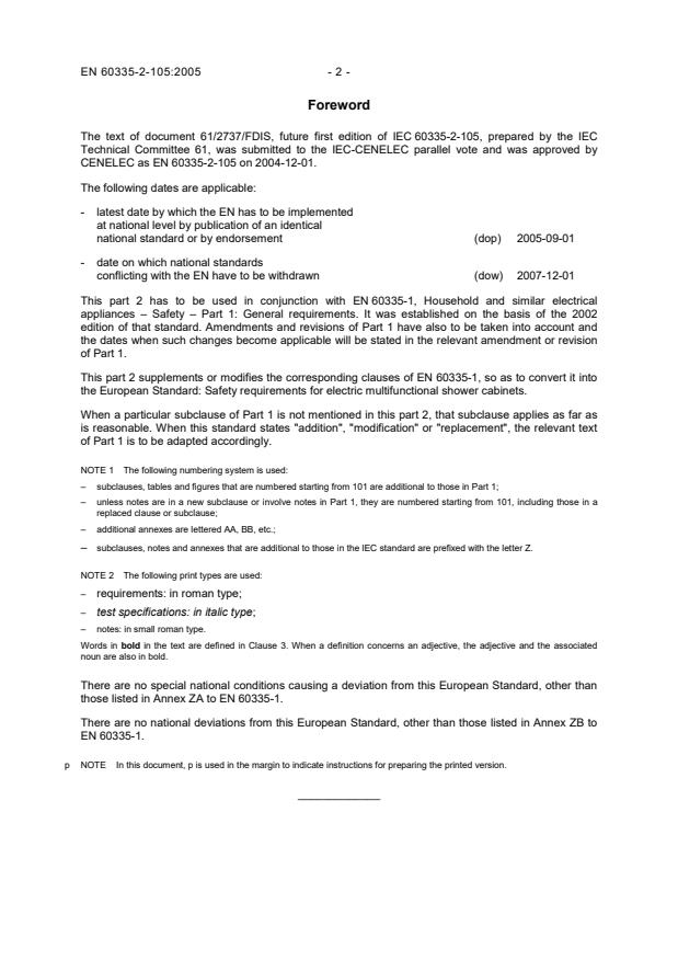 EN 60335-2-105:2005 has the following relationships with other standards: It is inter standard links to EN IEC 60335-2-105:2021, EN 60335-2-105:2005/A11:2010, EN 60335-2-105:2005/A1:2008, EN 60335-2-105:2005/A2:2020. Understanding these relationships helps ensure you are using the most current and applicable version of the standard.