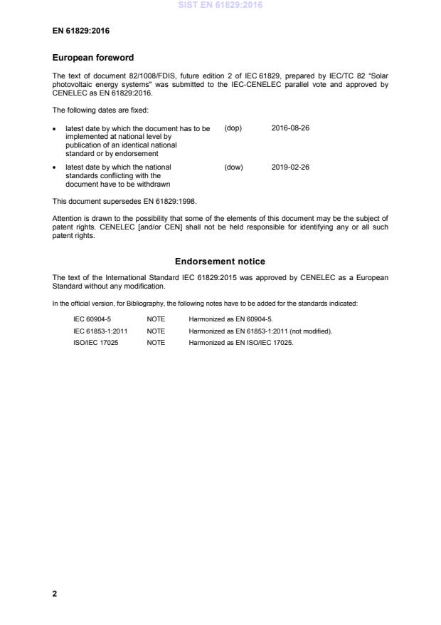 EN 61829:2016 references and aligns with the IEC/EN photovoltaic family, including: