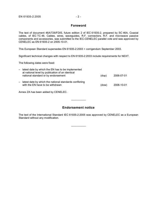 The text of the International Standard IEC 61935-2:2005 was approved by CENELEC as a European