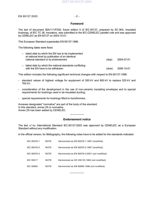 Ta slovenski standard je istoveten z: EN 60137:2003