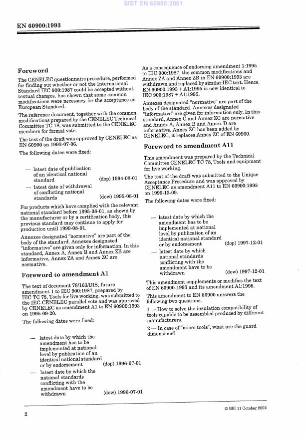 EN 60900:1993 is a standard published by CLC. Its full title is "Hand tools for live working up to 1 kV a.c. and 1,5 kV d.c.". This standard covers: Relates to insulated and insulating hand tools used for working live or close to live parts at nominal voltages up to 1 000 V a.c. and 1 500 V d.c. Note: -Tools and equipment and material supplied from an external energy source and insulating rods and poles used for working at a distance are not included.