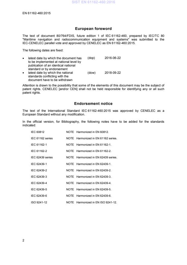 IEC-CENELEC parallel vote and approved by CENELEC as EN 61162-460:2015.
