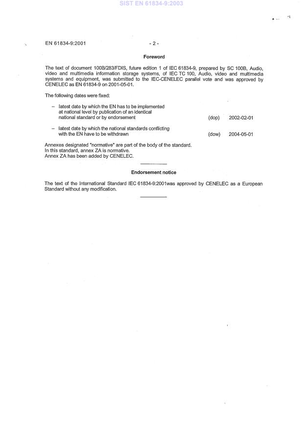 Ta slovenski standard je istoveten z: EN 61834-9:2001