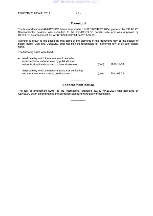 - This document is an amendment to EN 60749-23:2004 and corresponds to IEC 60749-23:2004/A1:2011.