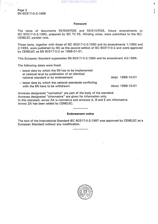 Ta slovenski standard je istoveten z: EN 60317-0-2:1998