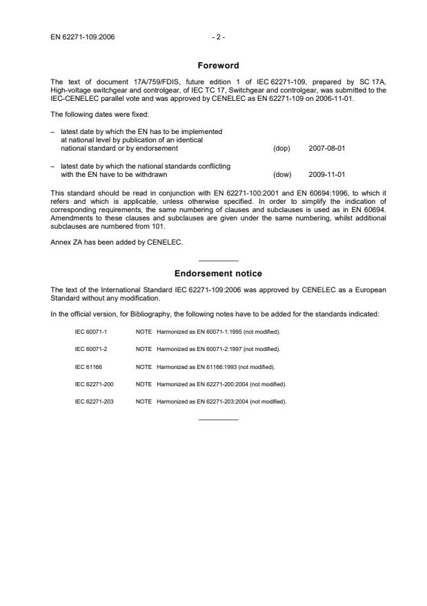 IEC-CENELEC parallel vote and was approved by CENELEC as EN 62271-109 on 2006-11-01.